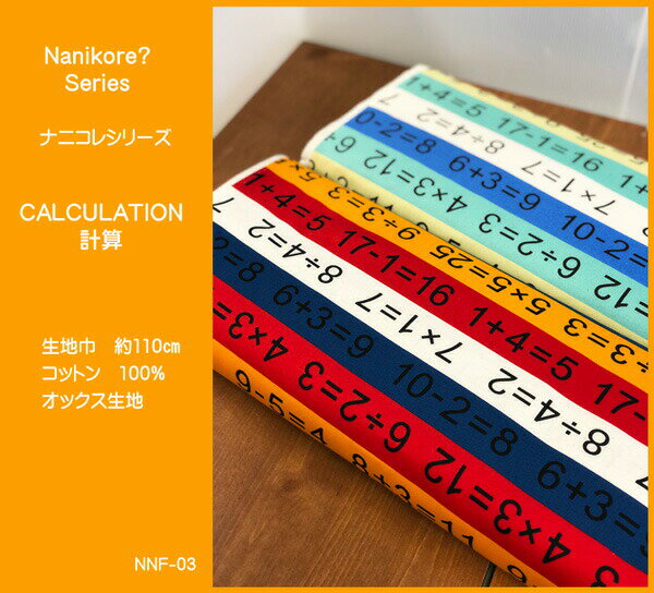 ●<<Nanikore? シリーズ>>/お勉強をテーマにした生地シリーズです/ボーダーの上に計算式が描かれた生地/CALUCUATION 計算/ナニコレシリーズ/オックス生地/算数/数学/入園入学/スモック/レッスンバッグ/シューズバッグ/巾着袋/N21/N22