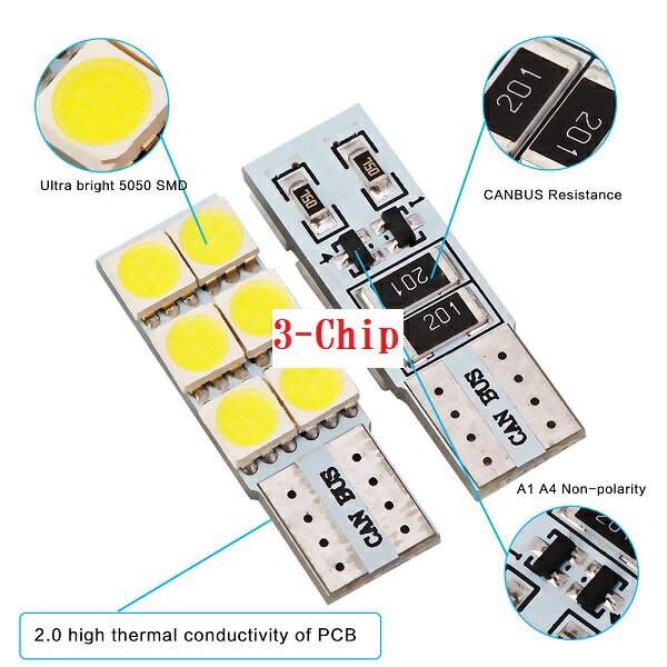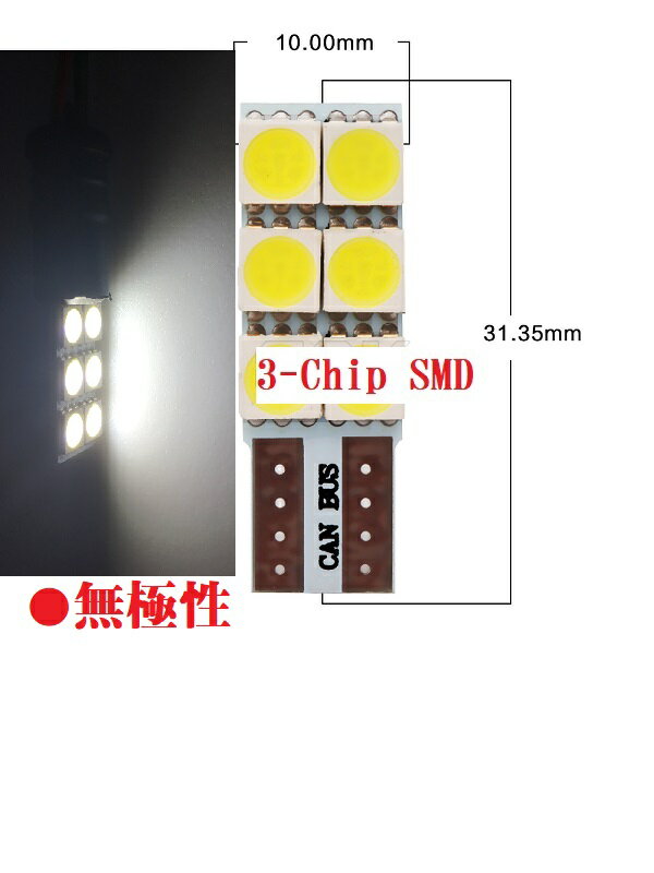 ラゲッジ カーテシ フット バニティー等に最適汎用 (工場直接仕入れの為無駄なコストを抑え低価格高品質を実現しています) 片方向照射型T10平型 5050 3チップSMD 無極性キャンセラー内蔵LEDライト2個セット業務用新品なります。
