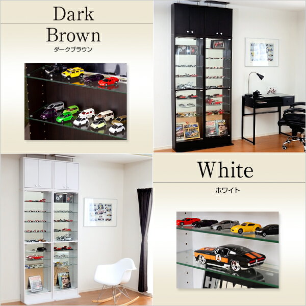 コレクションケース コレクションラック 浅型ハイタイプ セット(本体+上置き)奥行き19cm フィギュア 棚 壁面収納 ディスプレイラック ガラスケース フィギュアケース コレクションボード コレクションボックス 木製 白 ホワイト ダークブラウン ミニカー 時計