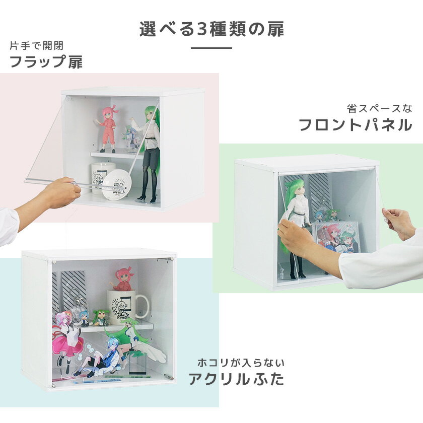 選べる3タイプ扉とひな壇付き コレクションケース キューブボックスα 改 【送料無料】 卓上 フィギュアケース アクリルふた 木製 UVカット フラップ扉 フロントパネル コレクションラック コレクションボックス 積み重ね フィギュアディスプレイケース